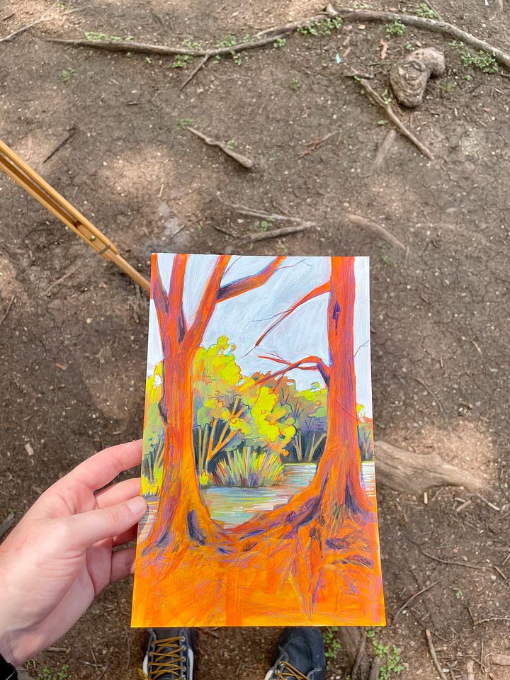 I did the same. I booked a day in Palmetto State Park to spend all day away from my phone and any other screens to paint, sit, and think in nature. And I enjoyed every single solitary moment of it. I also made my way to San Marcos to hang out on the water and visited my aunt who works at Buccee’s (and she gave me so many fudge samples at 7:30 in the morning, haha).